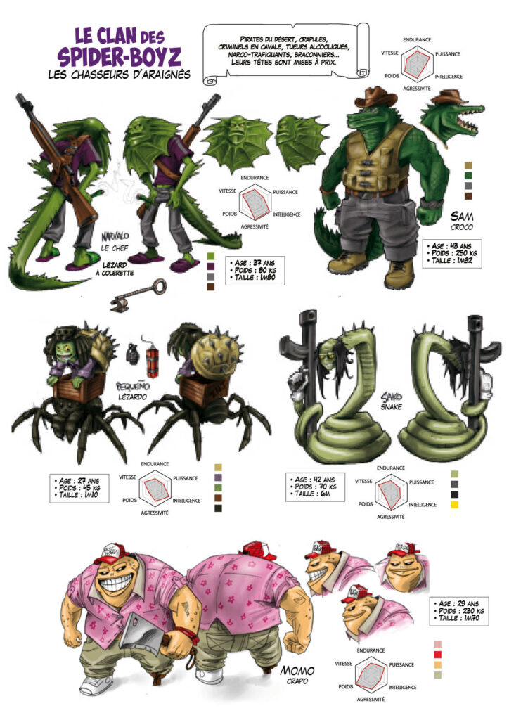 Narvalo est le le chef du clan des Spider-boyz, un clan de reptiles chasseurs d’araignées et narco-trafiquants. C’est un grand bandit, criminel louche et charismatique. Rustre et avide de pouvoir, c’est l’appât du gain qui le motive. Ses plans foireux sont toujours des échecs, mais lui et son équipe sont de dangereux individus. Il veut recruter Slim pour le détourner et faire de lui un des membres des spider boyz.